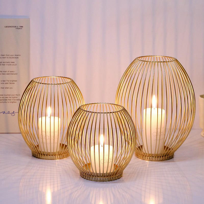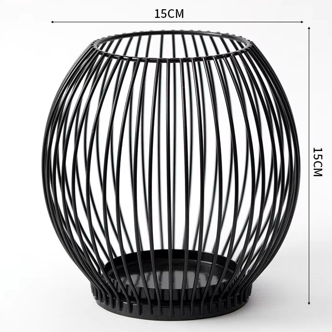 Home Living Room Decorative Retro Iron Metal Black Candle Holders Lanterns Candle Jars Ornament
