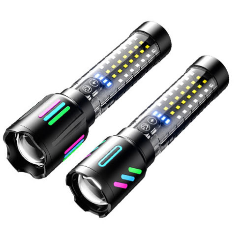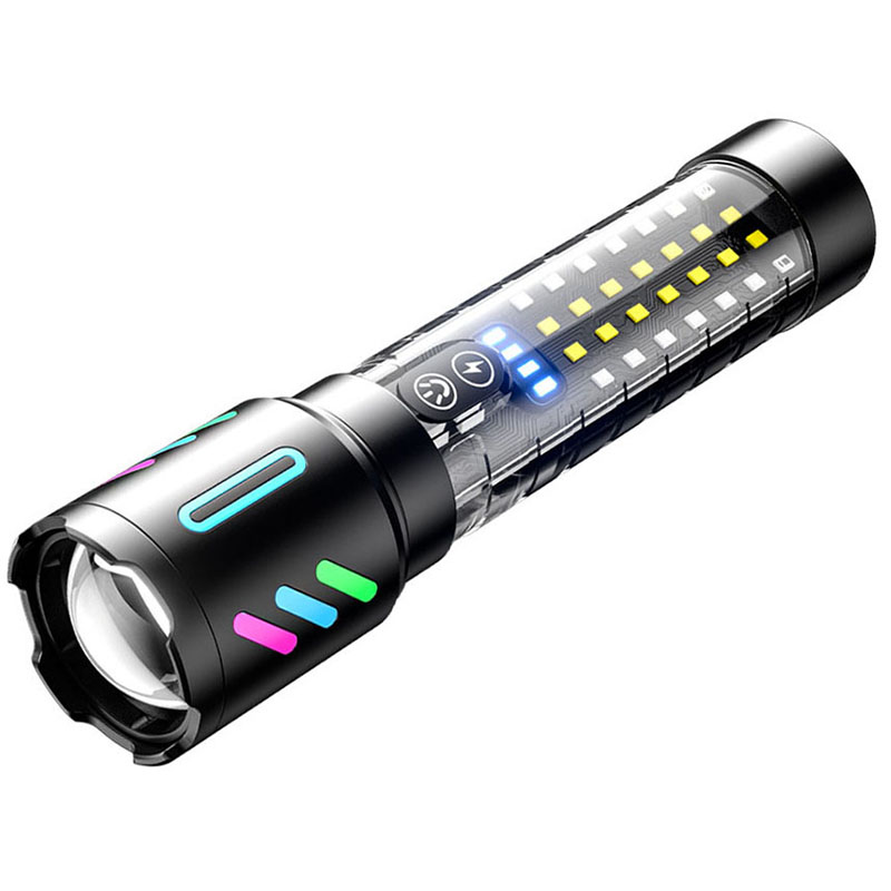20W High Lumens Rechargeable Handheld Zoomable White Laser Flashlight with Multicolor Luminous Strip