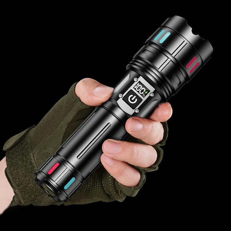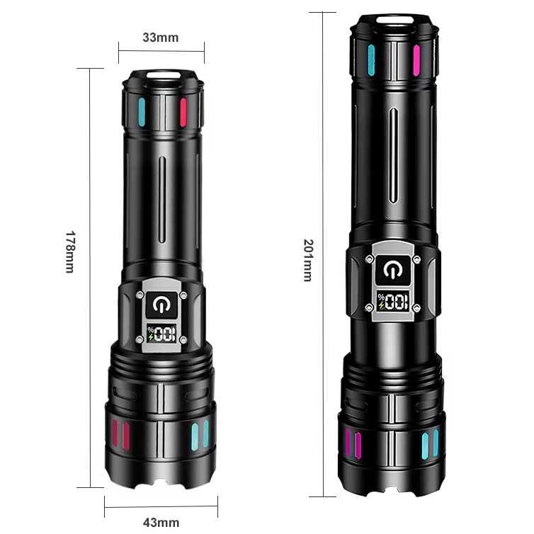 Aluminium Alloy Flashlight Fluorescent Strip Torch USB LCD Numerical Display White Laser 30W LED Outdoor Flashlight