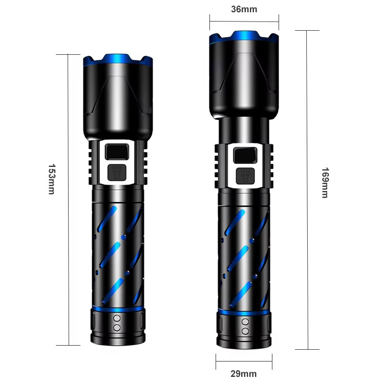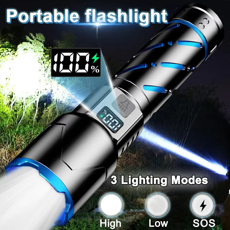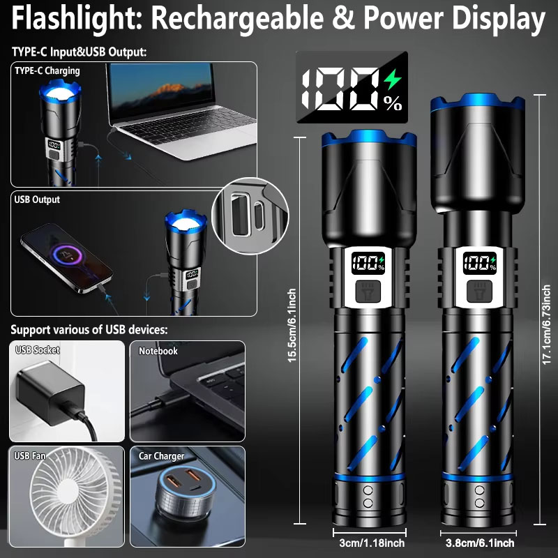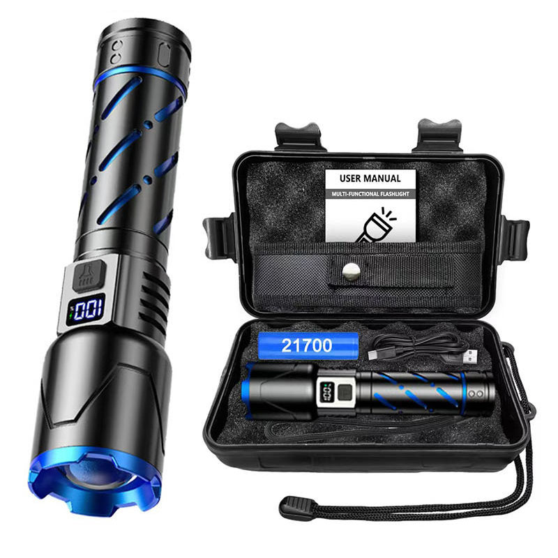 Aluminium Alloy Flashlight Fluorescent Strip Torch USB LCD Numerical Display White Laser 30W LED Outdoor Flashlight