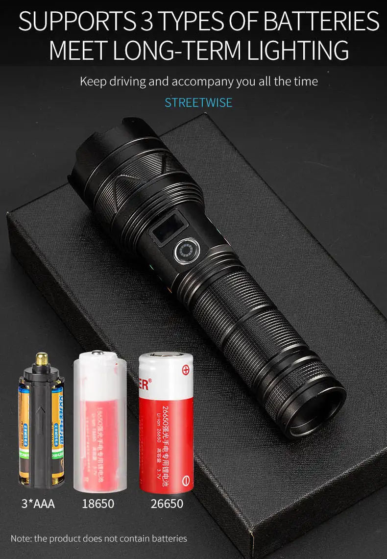 Aluminium Alloy Flashlight Fluorescent Strip Torch USB LCD Numerical Display White Laser 30W LED Outdoor Flashlight