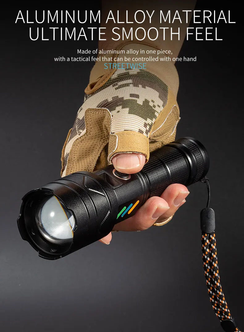 New High Power Long Distance Fluorescent Film Power Indicator Rechargeable LED Tactical Flashlights