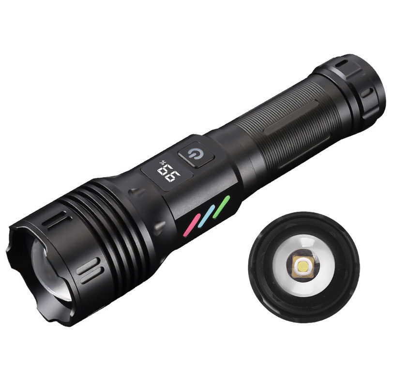 20W High Lumens Rechargeable Handheld Zoomable White Laser Flashlight with Multicolor Luminous Strip