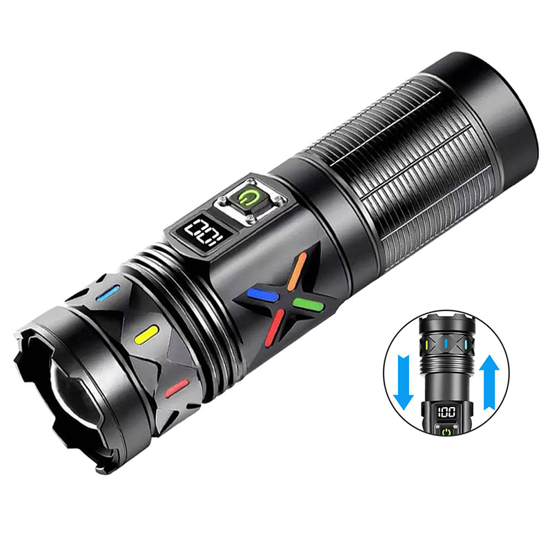 Aluminium Alloy Flashlight Fluorescent Strip Torch USB LCD Numerical Display White Laser 30W LED Outdoor Flashlight