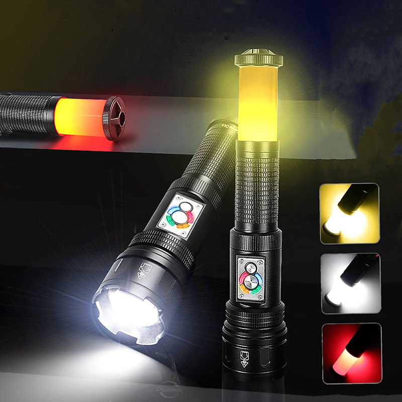 New High Power Long Distance Fluorescent Film Power Indicator Rechargeable LED Tactical Flashlights