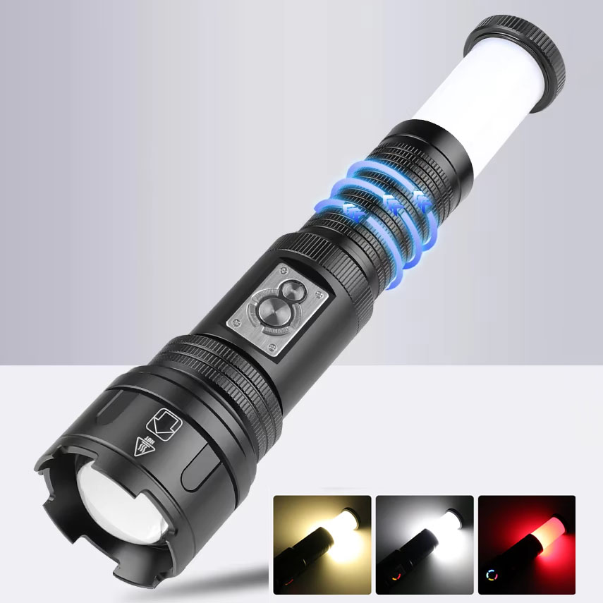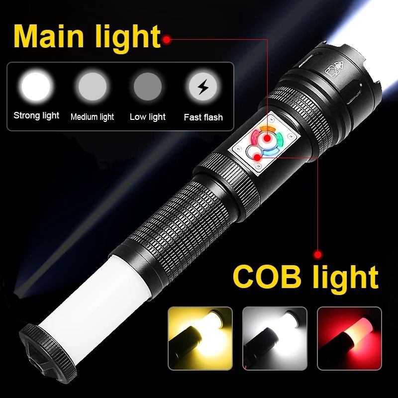 Aluminium Alloy Flashlight Fluorescent Strip Torch USB LCD Numerical Display White Laser 30W LED Outdoor Flashlight