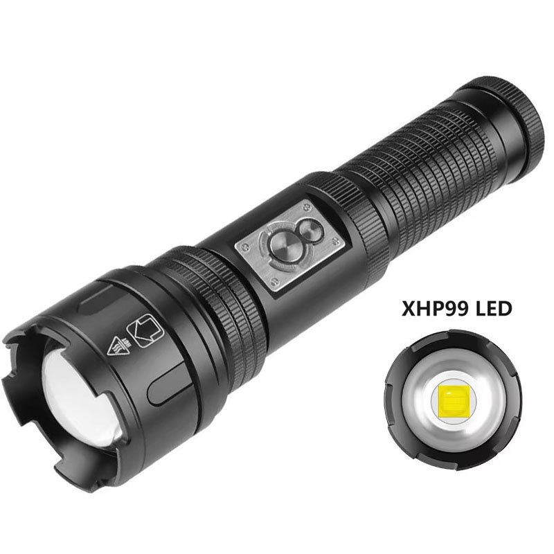 Spotlight long range power bank stepless zoomable rechargeable LED outdoor tactical flashlight
