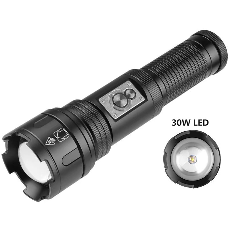 30W Rechargeable White Laser Flashlight Strong Long-Range Light with 1000 Meters Focus Flashlights & Torches