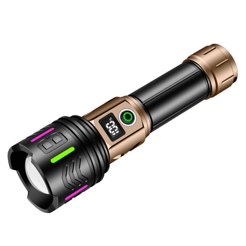 20W High Lumens Rechargeable Handheld Zoomable White Laser Flashlight with Multicolor Luminous Strip