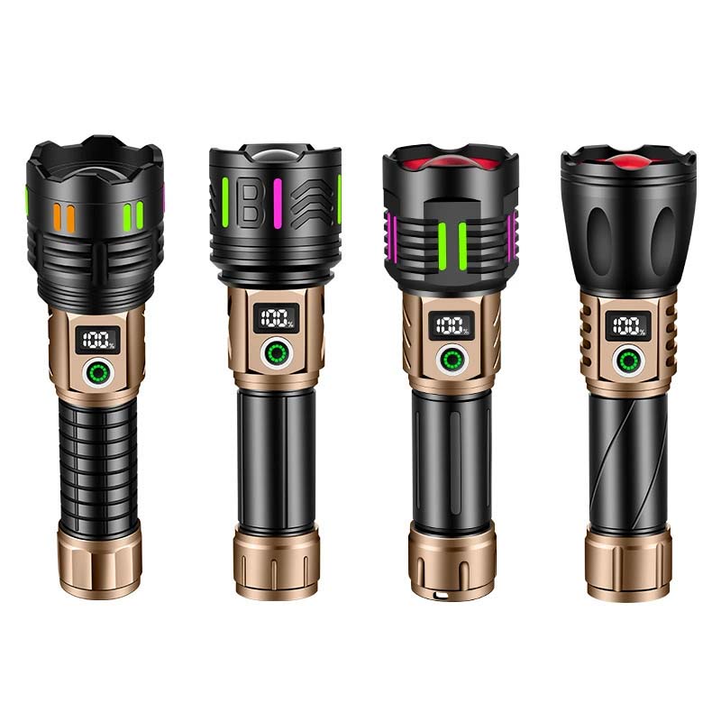 Aluminium Alloy Flashlight Fluorescent Strip Torch USB LCD Numerical Display White Laser 30W LED Outdoor Flashlight