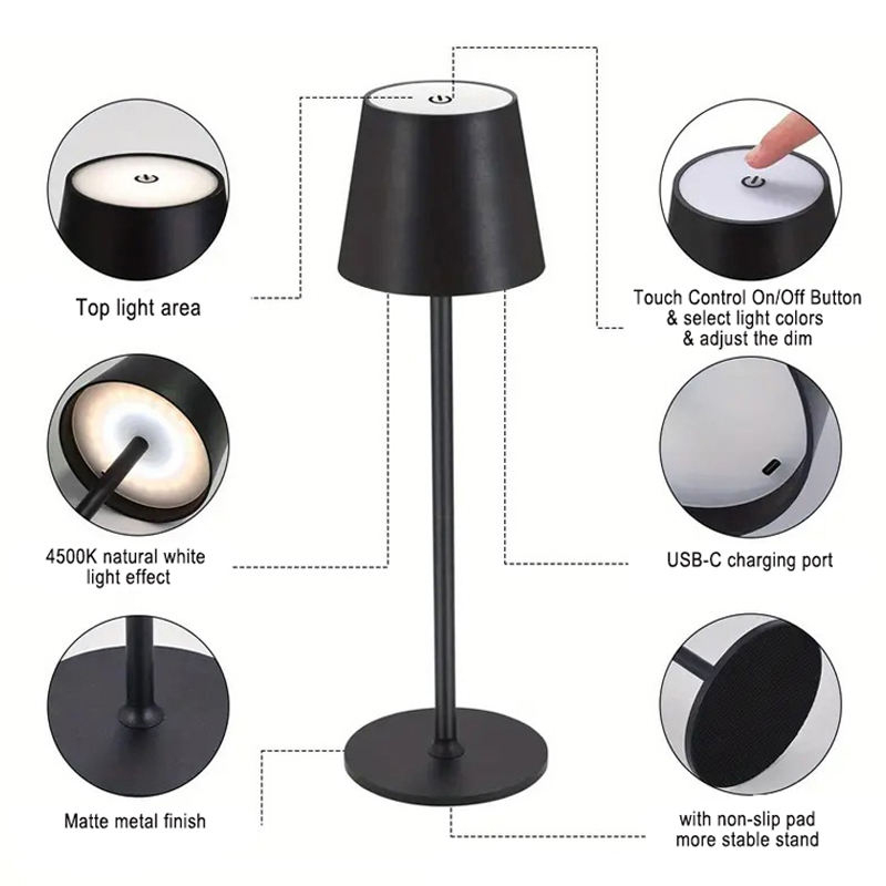 USB Charge Hotel Restaurant Bar Led Table Lamp Touch Control Cordless Table Lamp Wireless Lamp