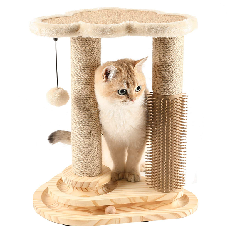Solid Wood Cat Tree Water & Scratch Resistance Cat Climbing Frame with Sisal Material Cat Tree Tower Scratcher House