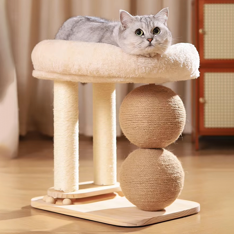 Indoor Scratcher Tree with Cute Sisal-Covered Cat Pet Bed Toy Cat Scratching Post Plush Ball for Kitten Cat Products