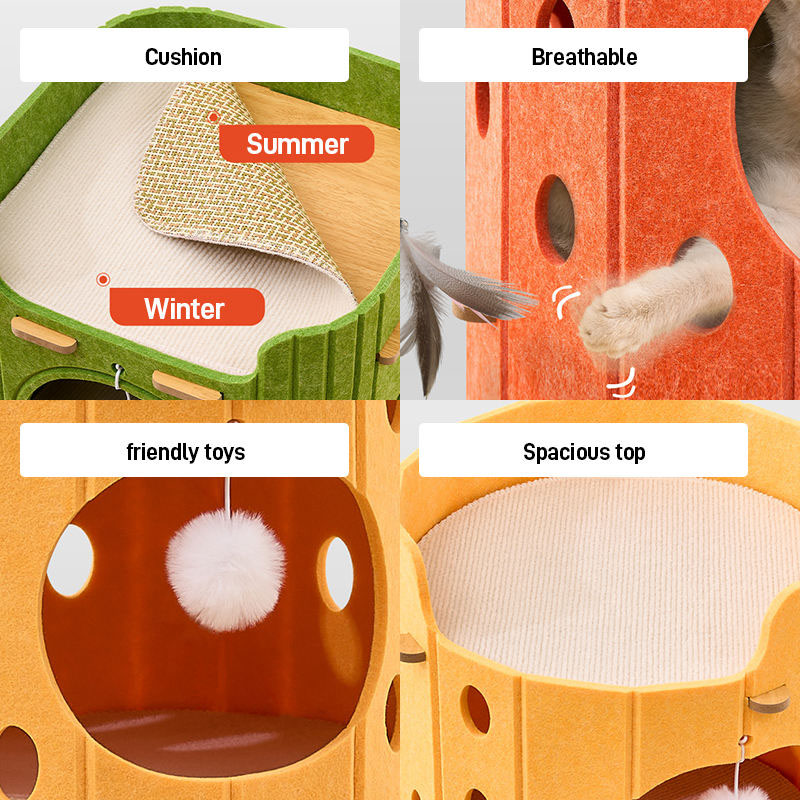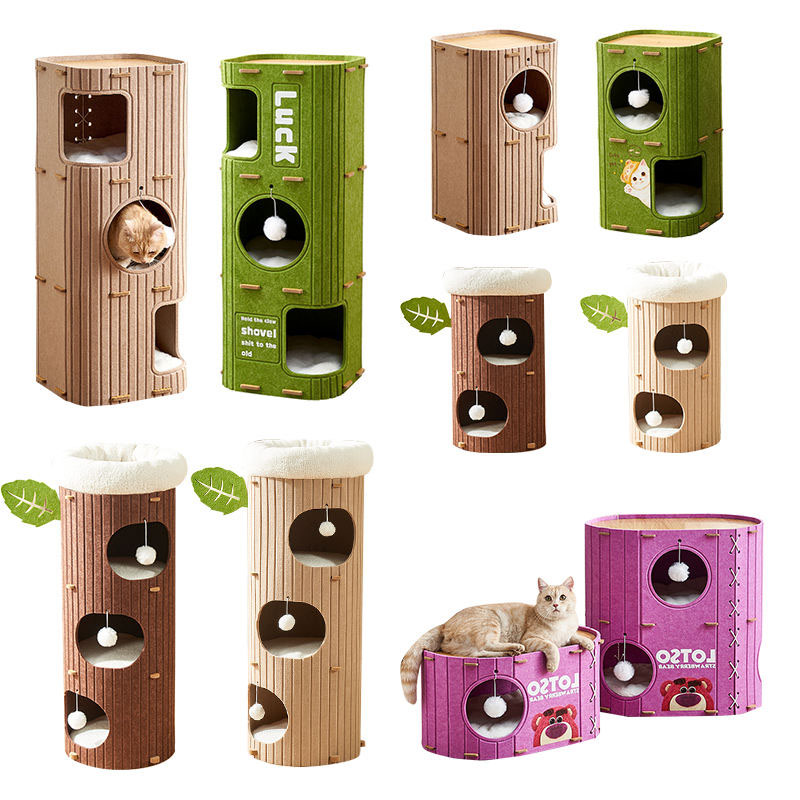 Large Cat Tree Colorful Super Towers Natural Wooden Pet Scratcher Sustainable Classic Cute Cat Bed Wood Post Sisal