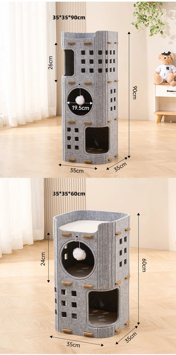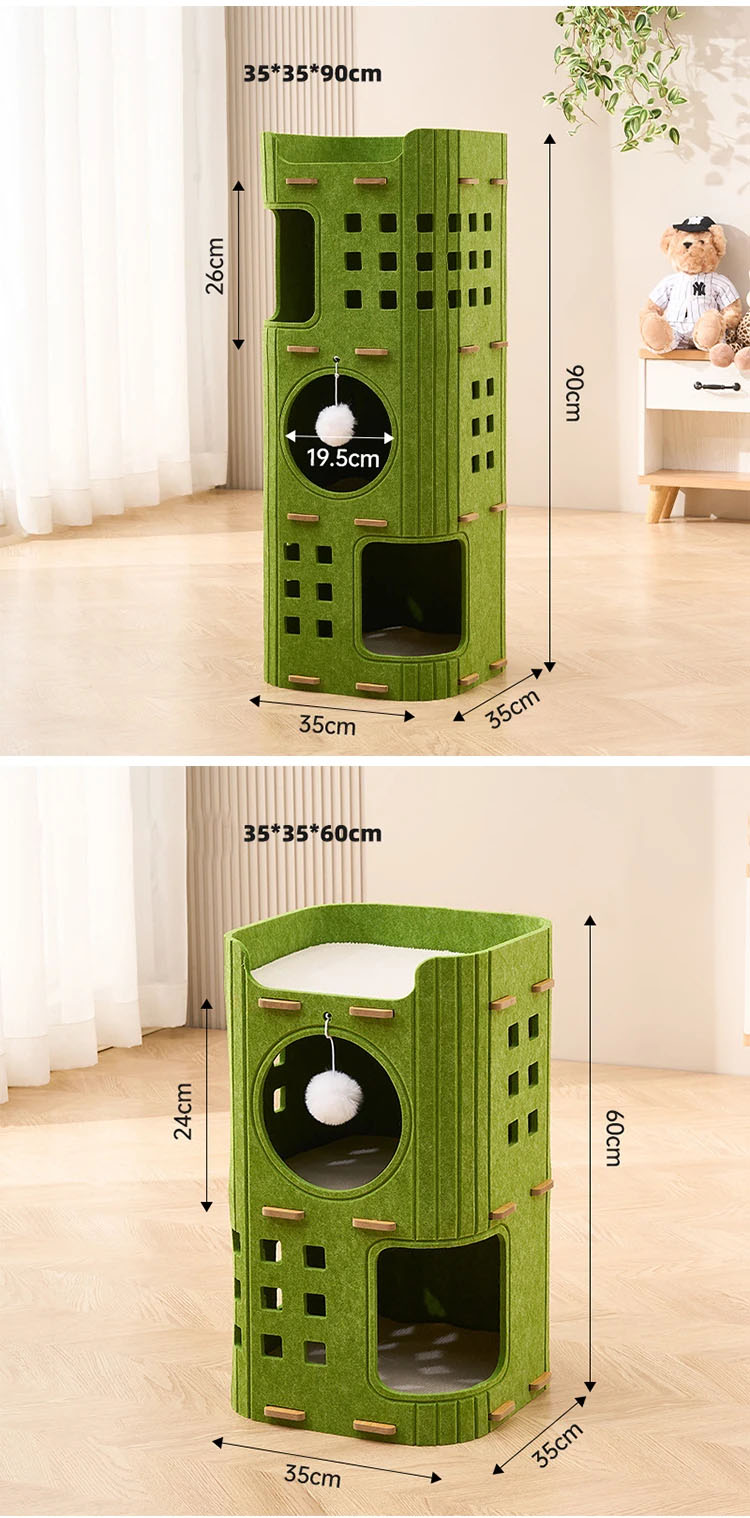 Solid Wood Cat Tree Water & Scratch Resistance Cat Climbing Frame with Sisal Material Cat Tree Tower Scratcher House