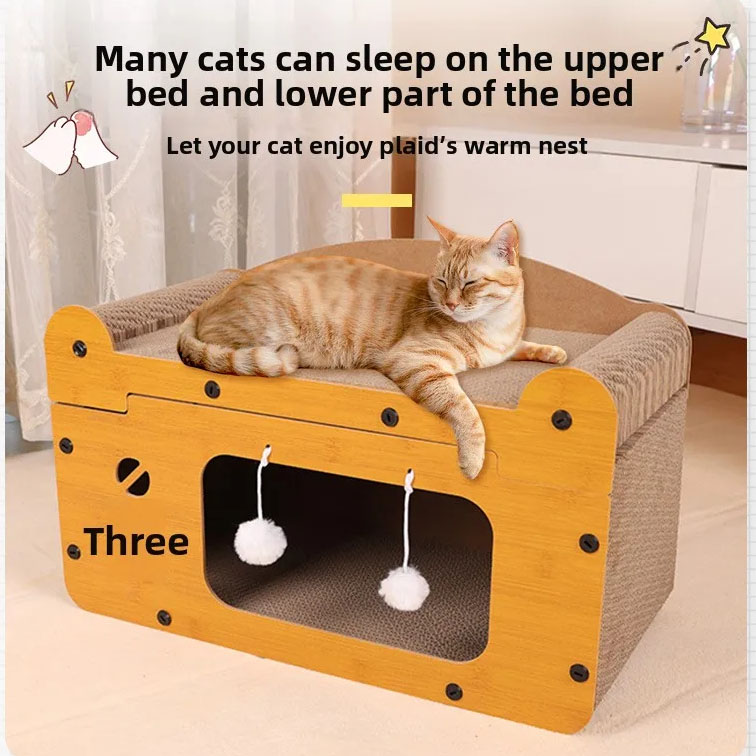 Cardboard Cat Scratcher Bed Lounge Cat Scratching Sleeping Playing Furniture Toy with Ball