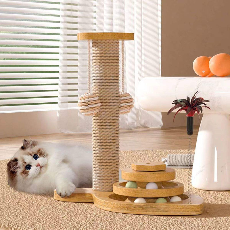 Indoor Scratcher Tree with Cute Sisal-Covered Cat Pet Bed Toy Cat Scratching Post Plush Ball for Kitten Cat Products