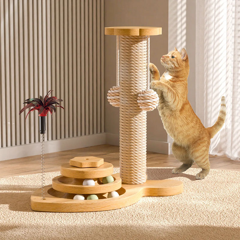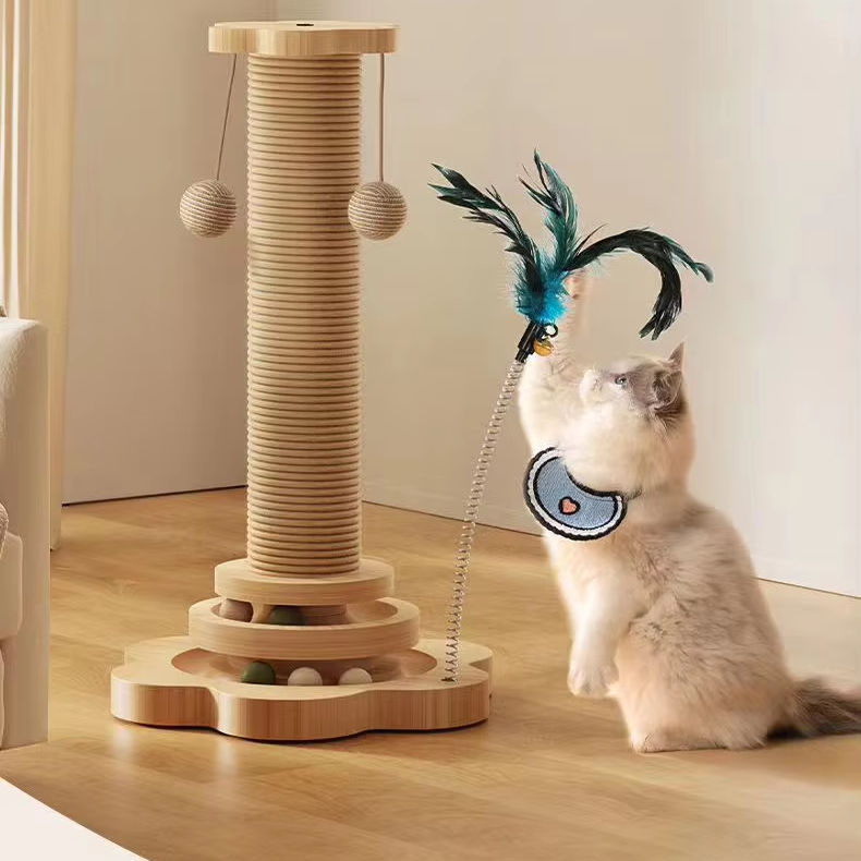 Large Classic Single Column Interactive Cat Tree Double Layer Sisal Cat Bed and Scratcher Tower Made of Wood