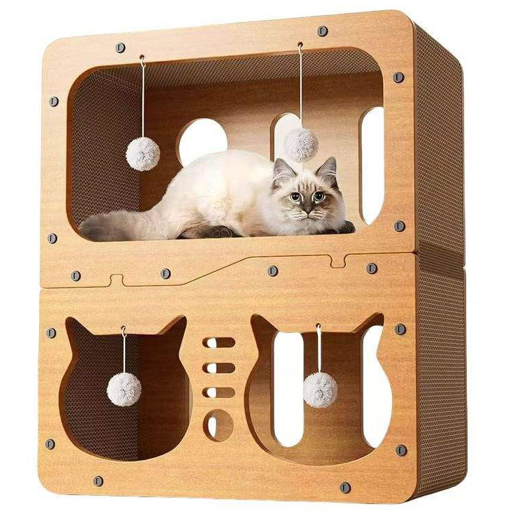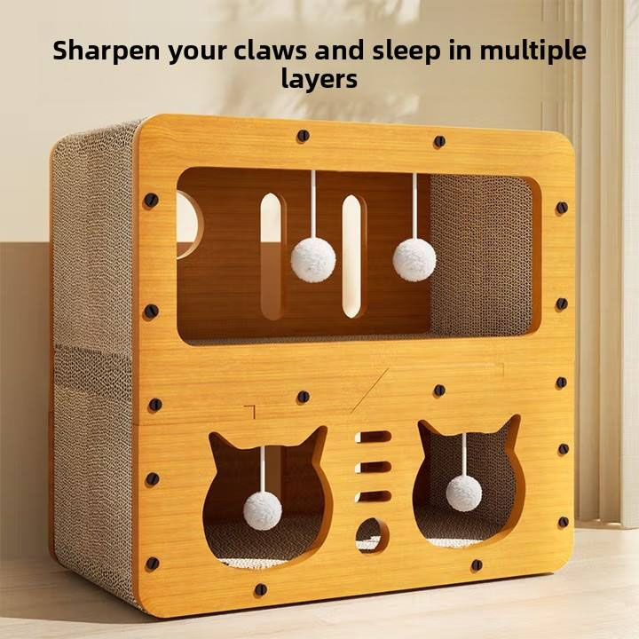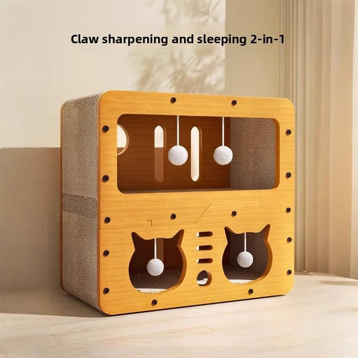 Cardboard Cat Scratcher Bed Lounge Cat Scratching Sleeping Playing Furniture Toy with Ball