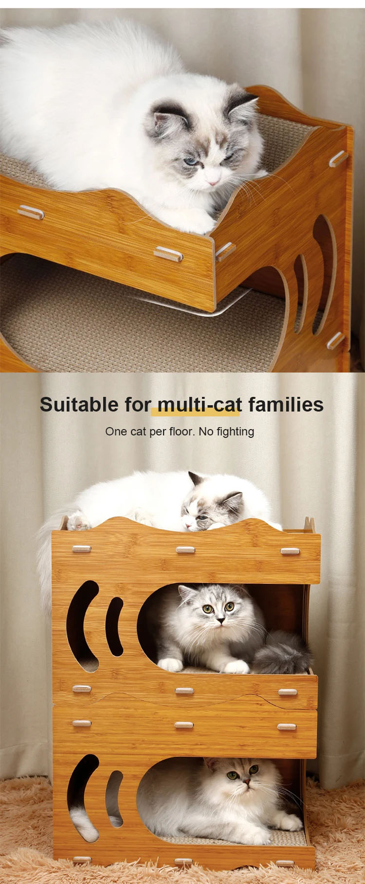 Large Cat Tree Colorful Super Towers Natural Wooden Pet Scratcher Sustainable Classic Cute Cat Bed Wood Post Sisal