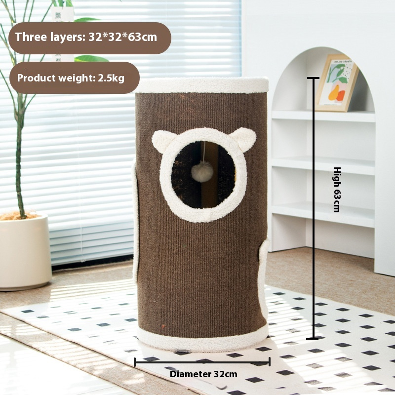 Multi-Layer Sisal Barrel Climbing Rack Household Cat Tree Scratcher Small Apartment Non-Ocupying Cat Nest Carton