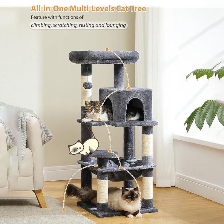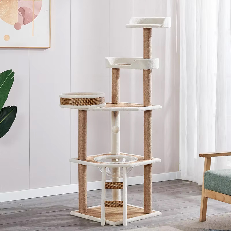 Solid Wood Cat Tree Water & Scratch Resistance Cat Climbing Frame with Sisal Material Cat Tree Tower Scratcher House