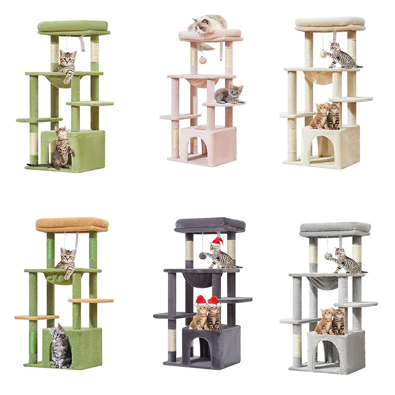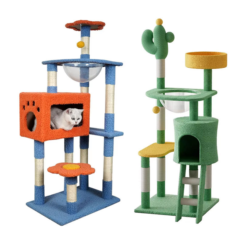Large Cat Tree Colorful Super Towers Natural Wooden Pet Scratcher Sustainable Classic Cute Cat Bed Wood Post Sisal