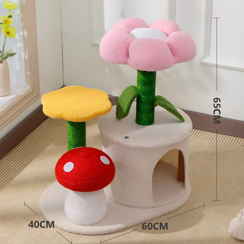 Pet Supplies Cats Nest Tree Toy Flower Shape Cat Scratching Column Supplies Cat Climbing Frame Sisal Scratchers