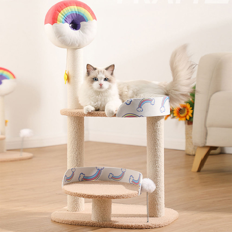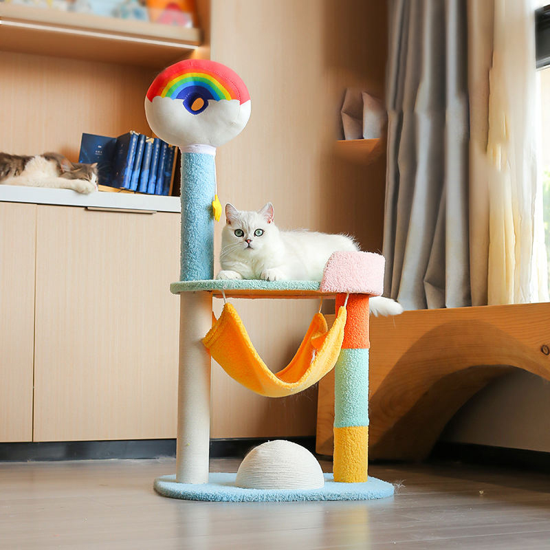 Large Cat Tree Colorful Super Towers Natural Wooden Pet Scratcher Sustainable Classic Cute Cat Bed Wood Post Sisal