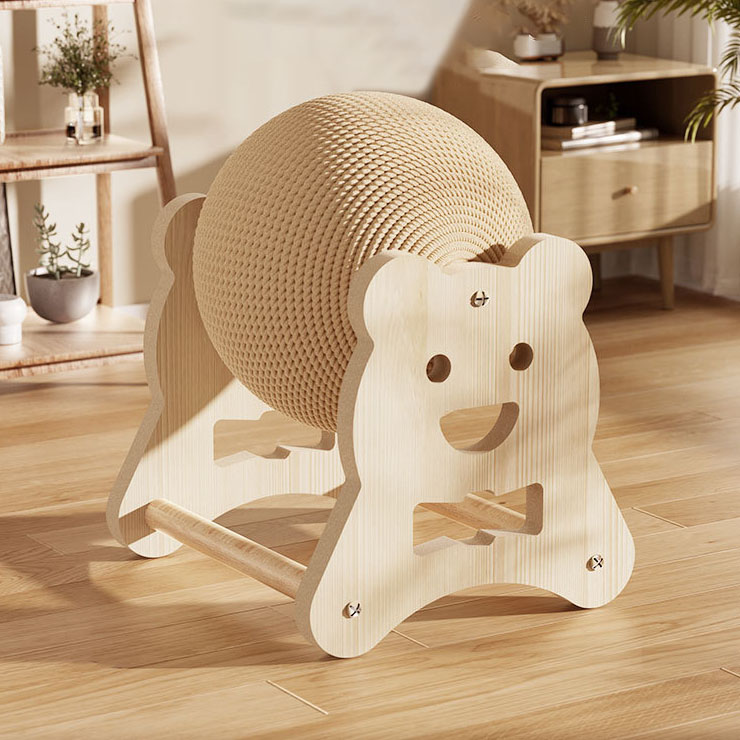 Modern Solid Wood Cat Turntable Sisal Rope Self-Hilarious Cat Scratching Post Climb Stick Mint Ball Kitten Boring Toy Carton