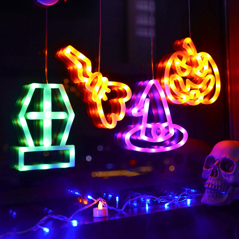Halloween Pumpkin, Bat & String Lights Battery-Powered Indoor Decor for Home, Bedroom, Party, and Window Festivities, Halloween Decorations