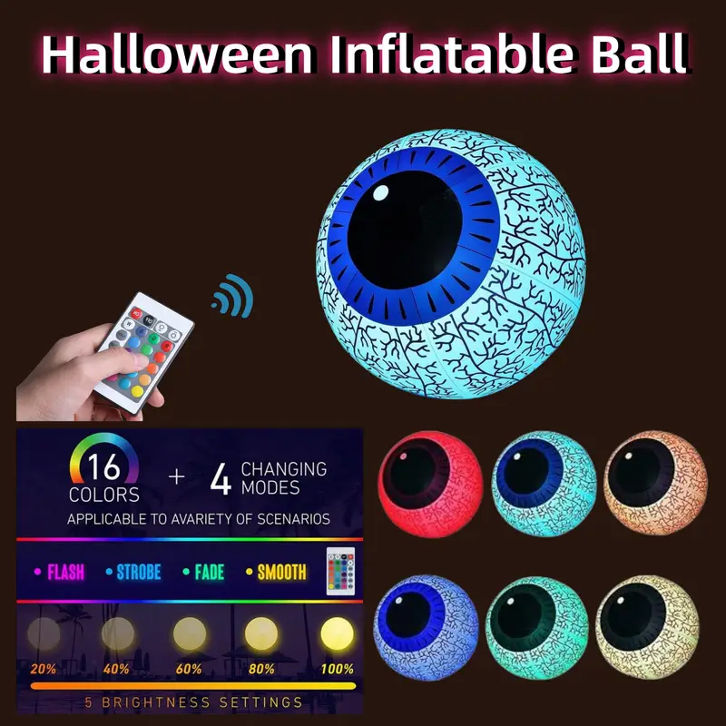 Halloween Inflatable Ghost Eyeball with RGB LED Light Built-in Battery Powered Yard Party Decor for Christmas