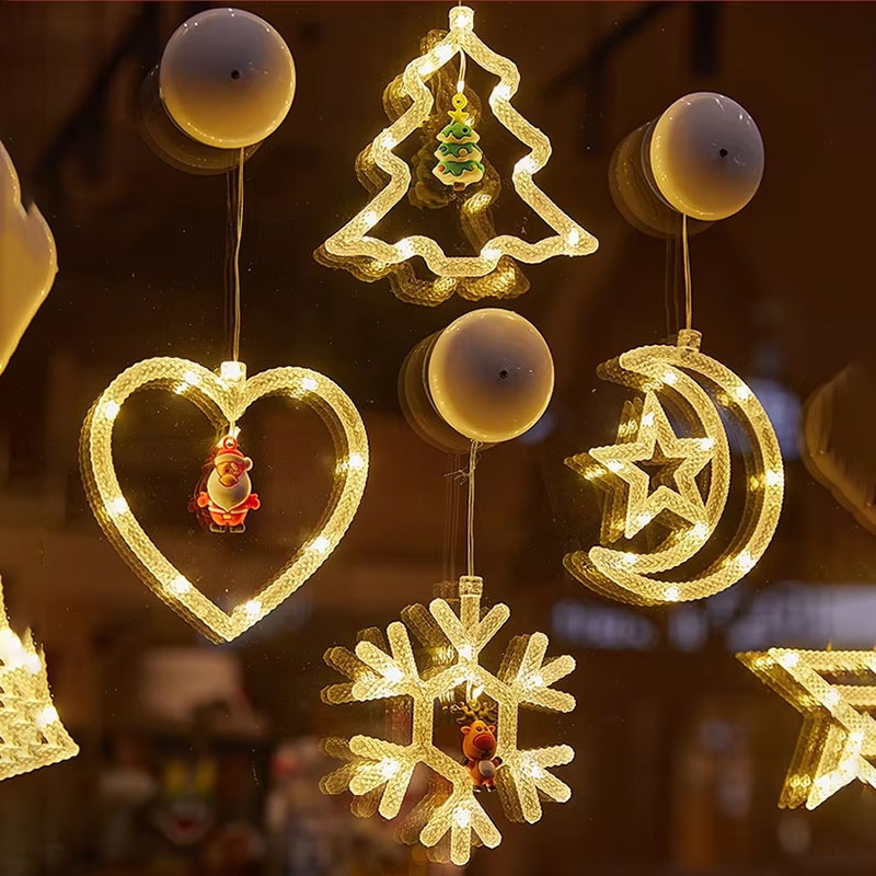 New Christmas Suction Cup Lights Leather Cord Decorative Scene Display for Holiday Window Indoor-Outdoor Use