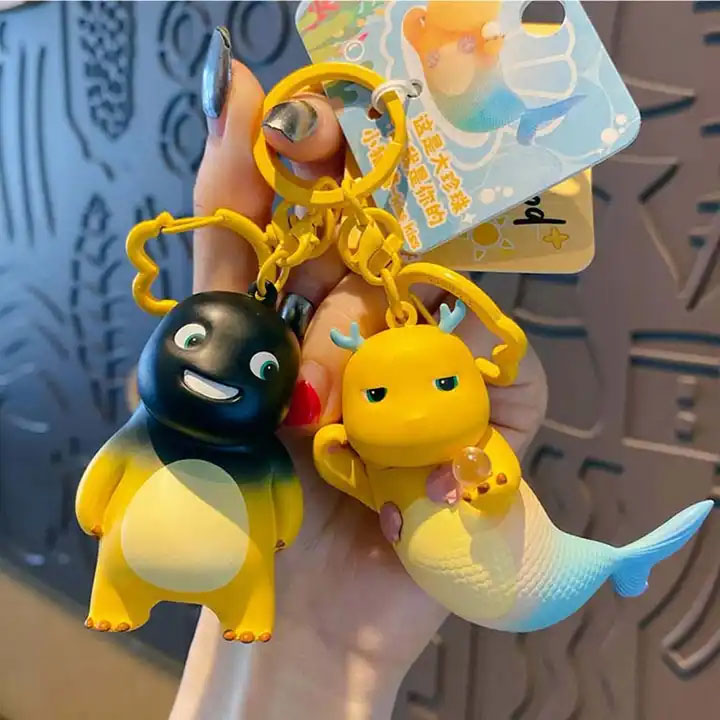 3D PVC Plastic Kids Cute Cartoon Designer Car Key Chain Ring Toy Keyring Wood Caving Cat Keychain