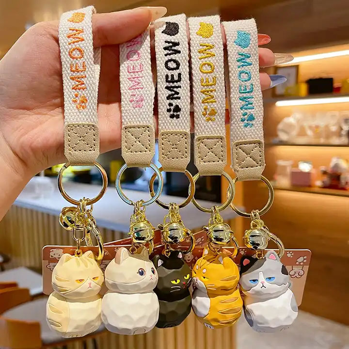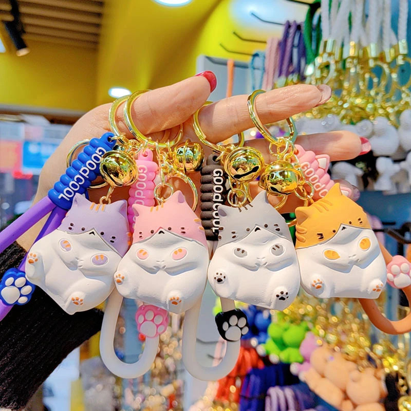 3D PVC Plastic Kids Cute Cartoon Designer Car Key Chain Ring Toy Keyring Wood Caving Cat Keychain