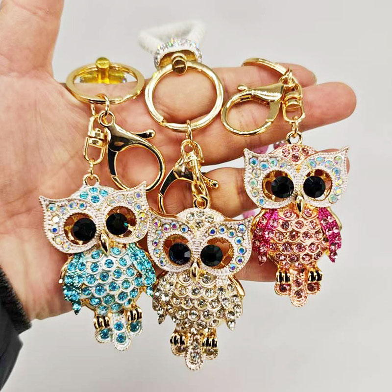 3D Cartoon Doll Keychain Metal Key Chain Shiny and Sparkling Keychains with Rhinestones