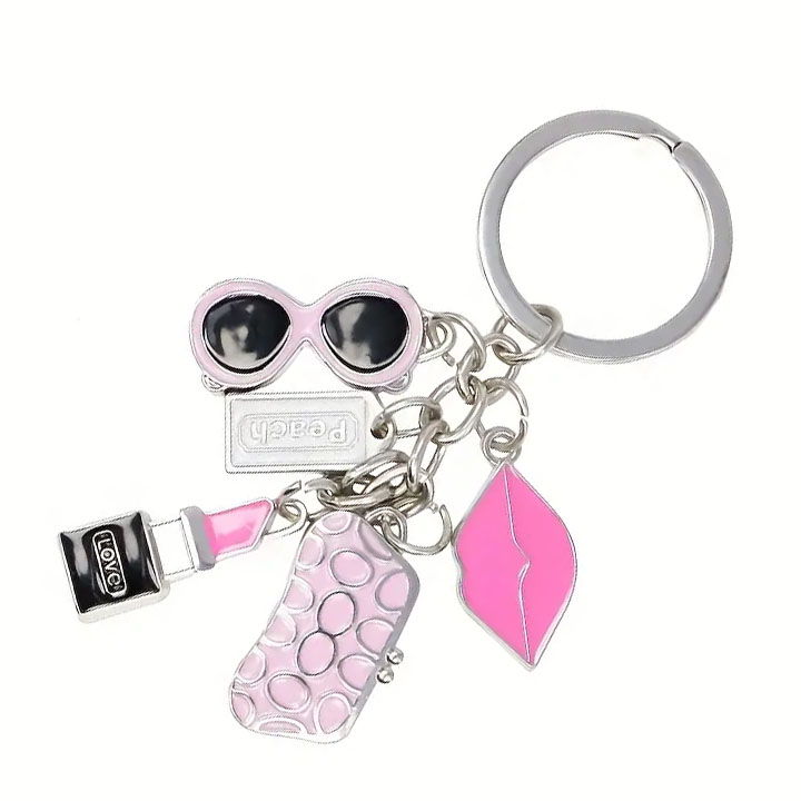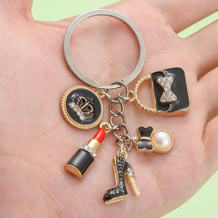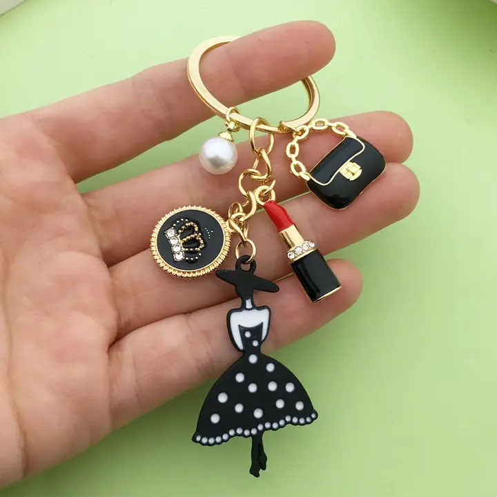 3D Cartoon Doll Keychain Metal Key Chain Shiny and Sparkling Keychains with Rhinestones