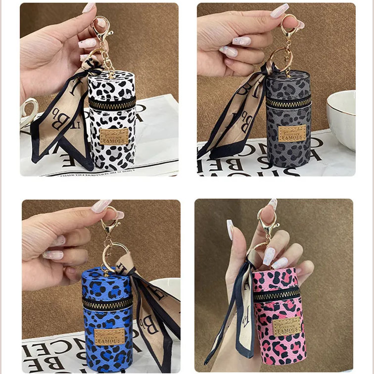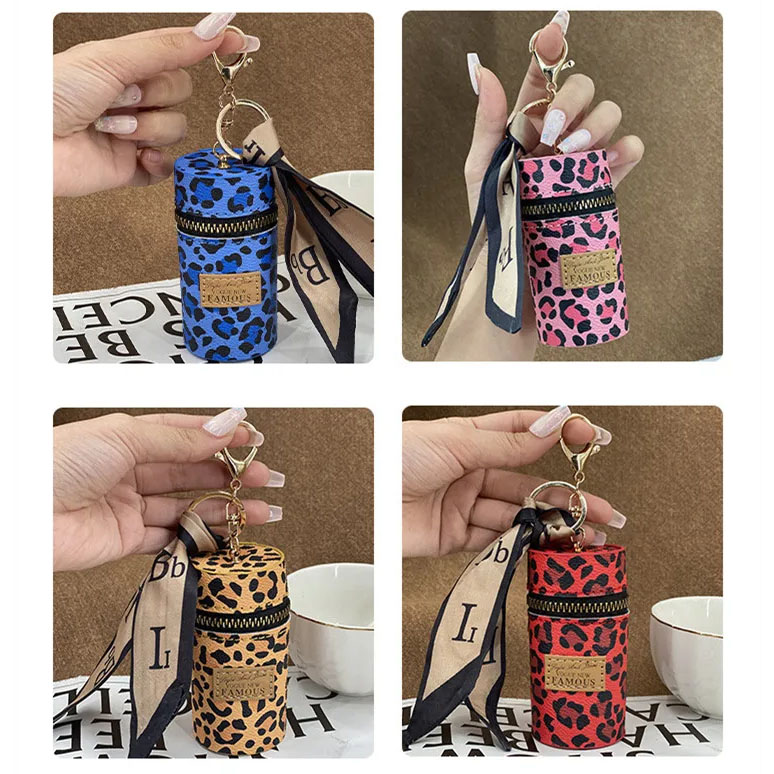 Candy Color Teddy Bear Keychain Rhinestone Bears Doll Key Chains Leather Wristlet Bag Pendant Cute Keychain