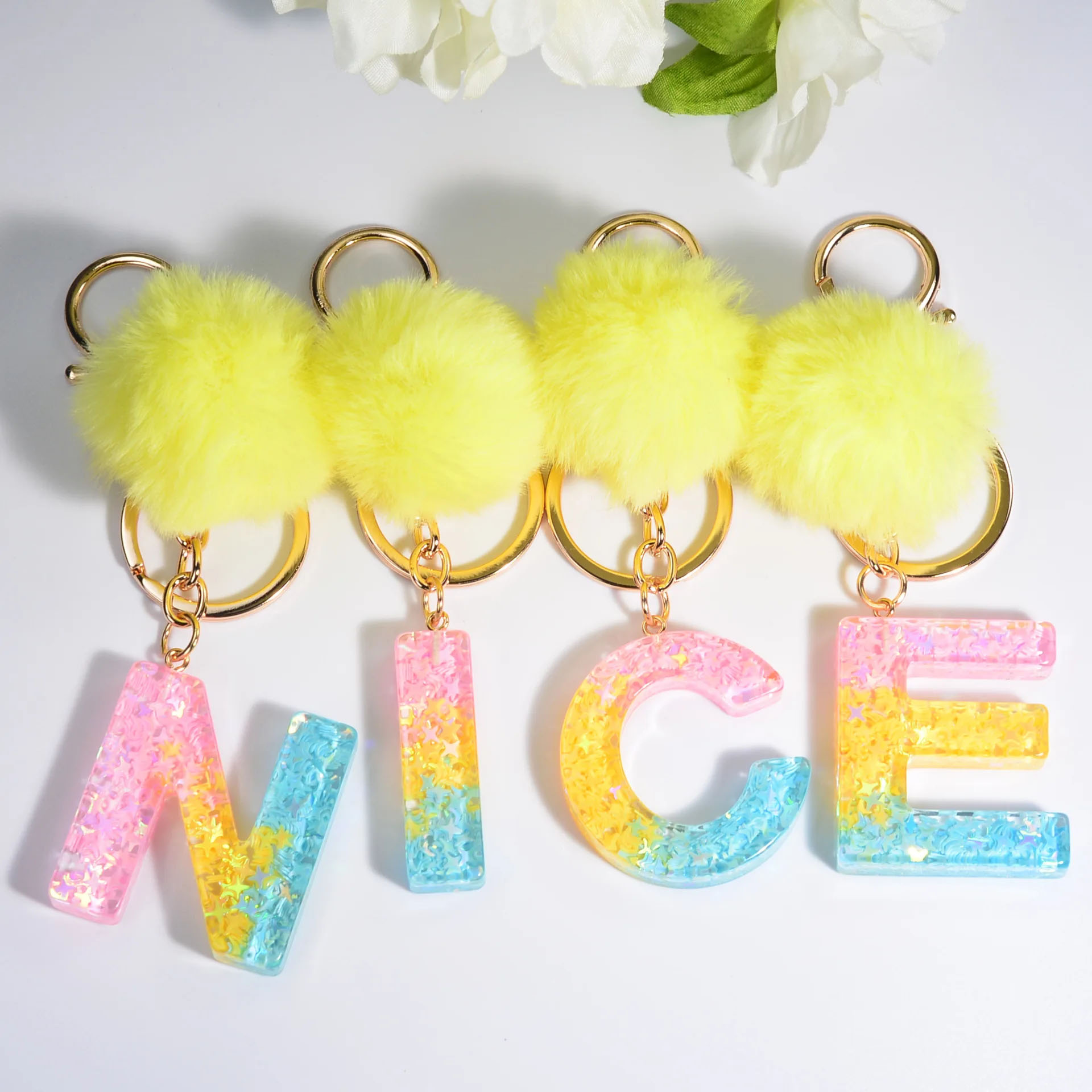 Keychain New Designed Anime Cartoon Keychain Graffiti Gradient Electroplating Bear Car Keyring