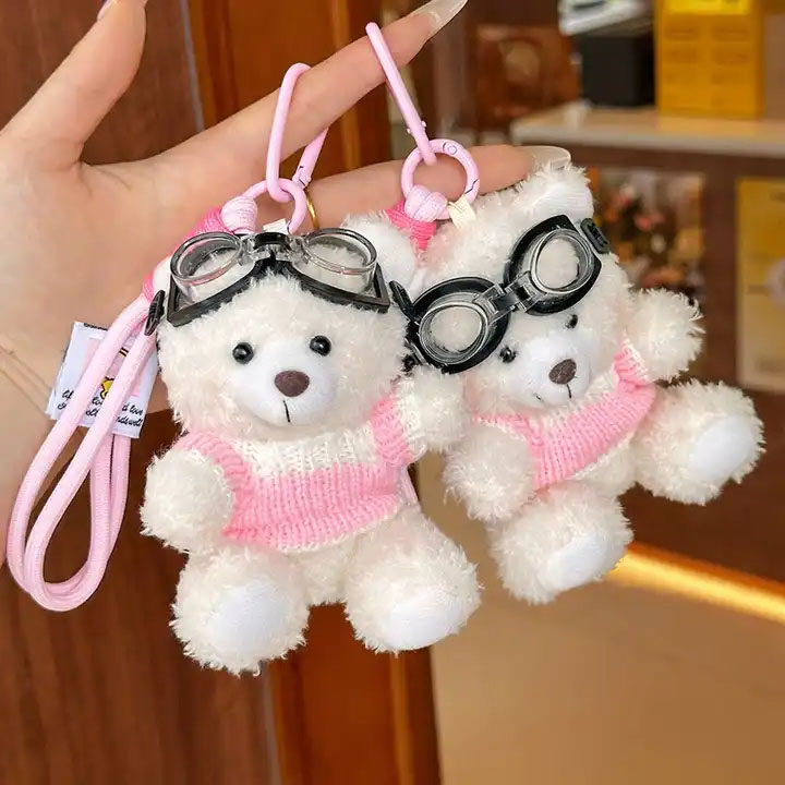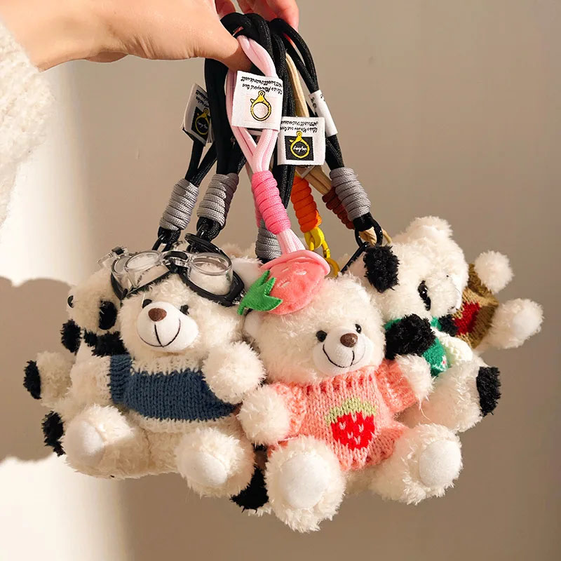Candy Color Teddy Bear Keychain Rhinestone Bears Doll Key Chains Leather Wristlet Bag Pendant Cute Keychain