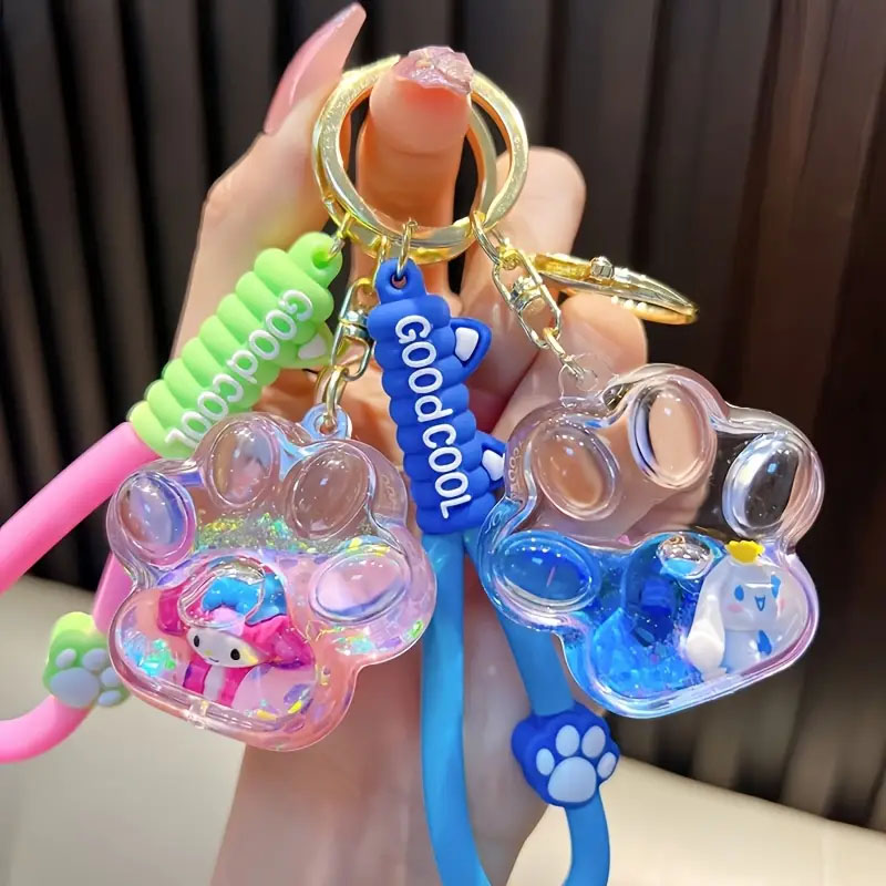 Liquid Keychain Kawaii Plastic Key Chain llaveros Candy Colors Cat Paw Key Holder Key Ring Floating Keychains