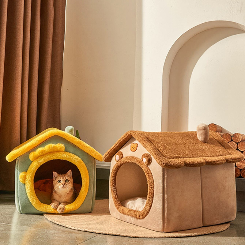 Pet Cat Dog Cave Bed House Foldable Fleece Cute Design Arctic Velvet Fabric Pet Cave Cat House with Mat Plush Pet Bed Indoor
