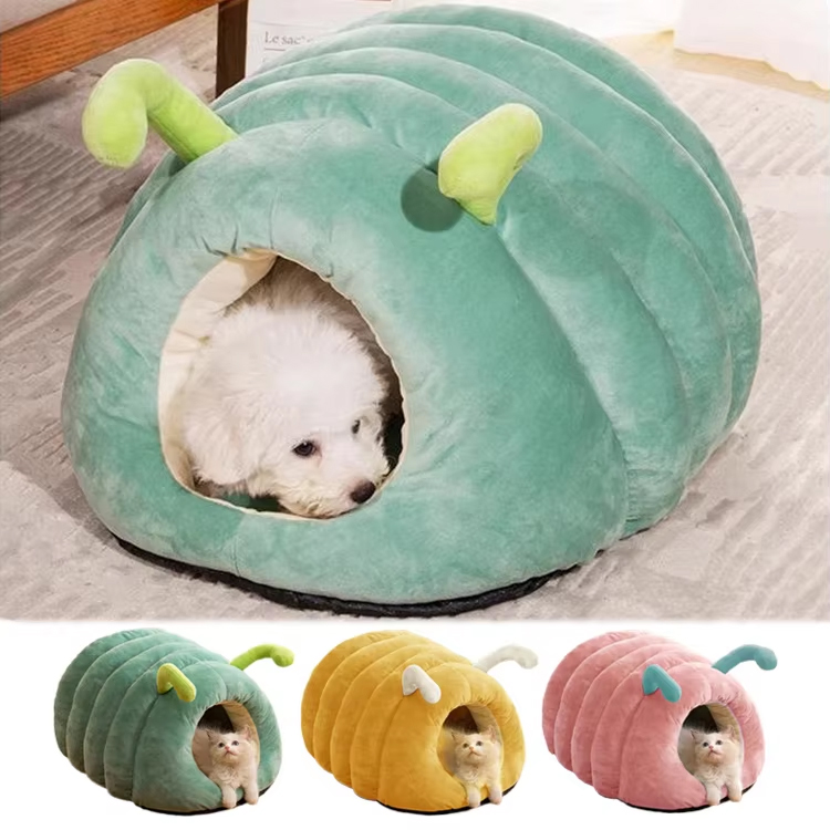 Pet Cat Dog Cave Bed House Foldable Fleece Cute Design Arctic Velvet Fabric Pet Cave Cat House with Mat Plush Pet Bed Indoor