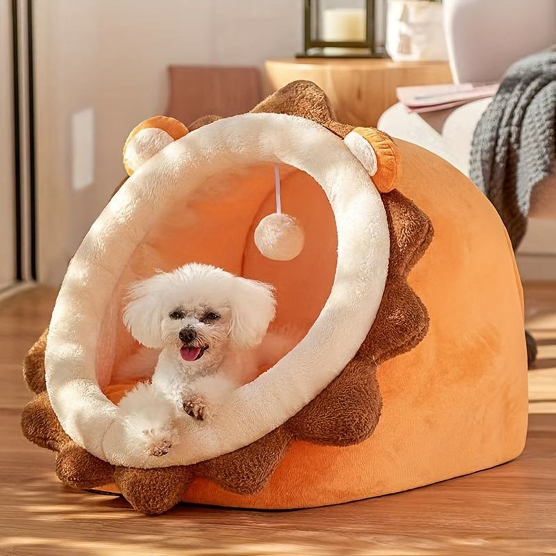 Pet Cat Dog Cave Bed House Foldable Fleece Cute Design Arctic Velvet Fabric Pet Cave Cat House with Mat Plush Pet Bed Indoor