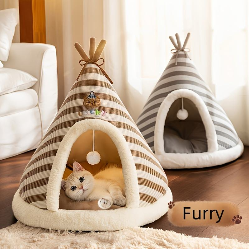 Vocado Color Soft Cat and Dog Bed Modern Pet Nest with Hanging Plush Ball Non-Slip Bottom for Sleep and Play