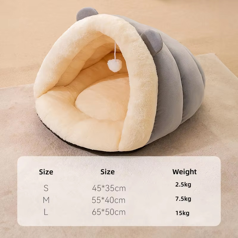 Pet Cat Dog Cave Bed House Foldable Fleece Cute Design Arctic Velvet Fabric Pet Cave Cat House with Mat Plush Pet Bed Indoor