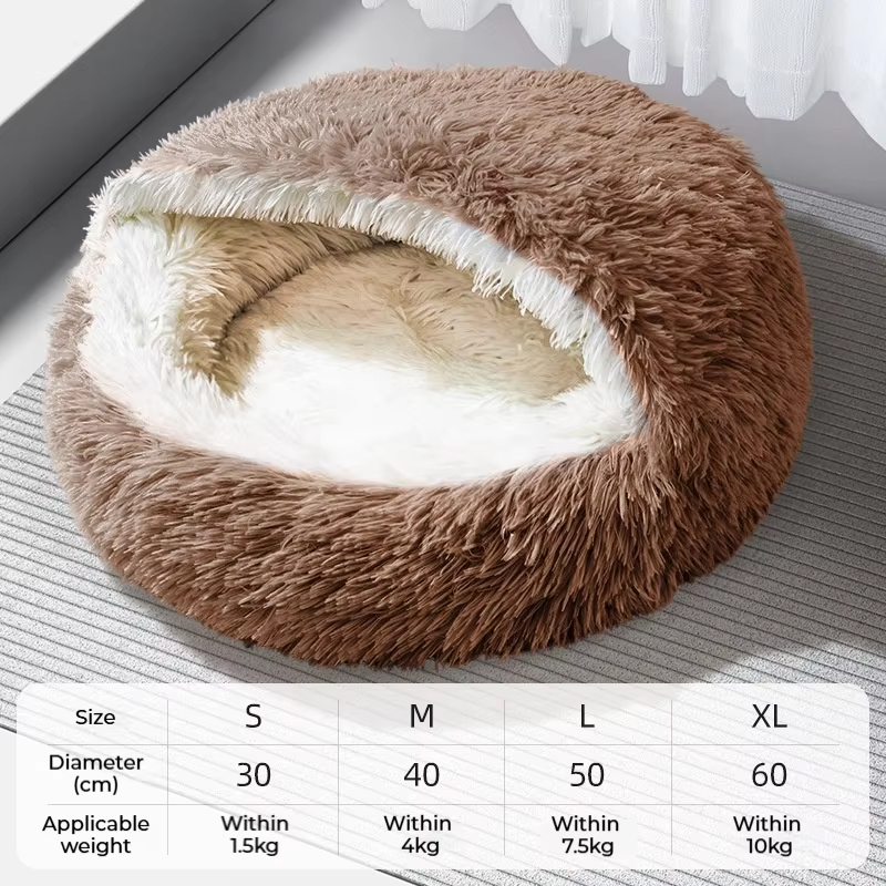 High Quality Pet Bed with Pillow Removable Dog Bed for All Seasons Warm Cat Bed with Anti- slip Bottom