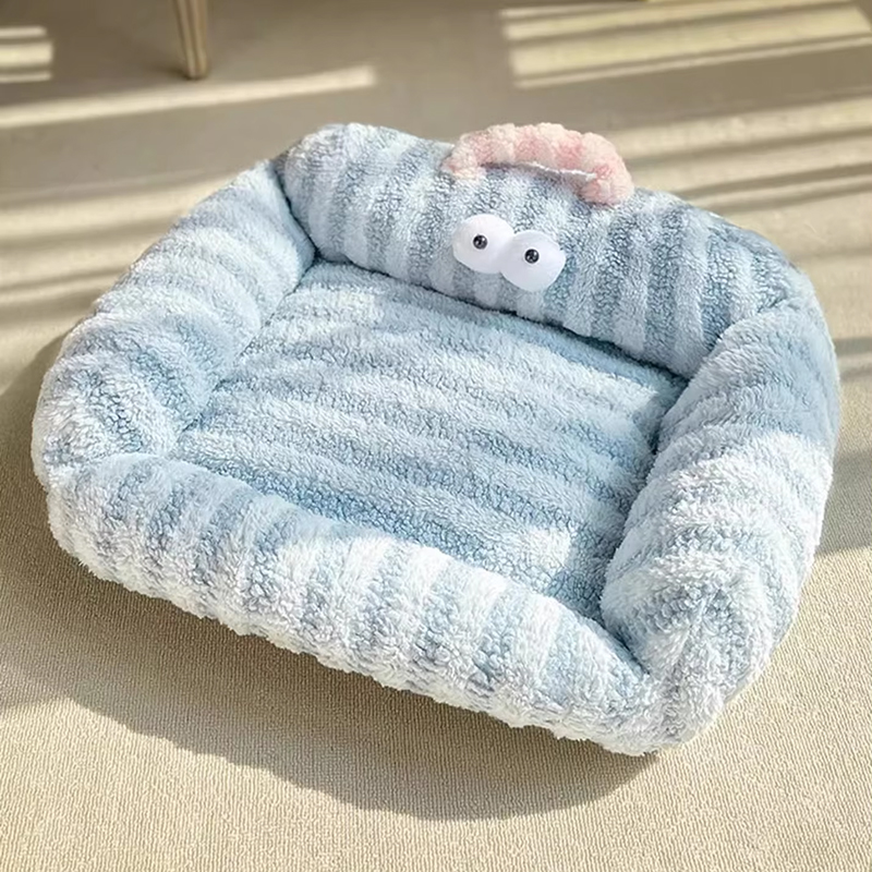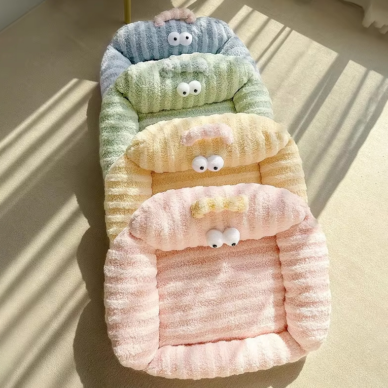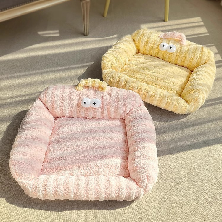 Winter Warmth New Product High Weight Straight Strip Pet Pad Rabbit Plush Cat Nest for Small Animals Long Hair Cat Beds
