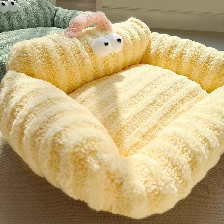 Cozy Yellow Cats Sofa Bed With Detachable Cover Comfortable Sleeping Cushions for Kittens Pet Beds