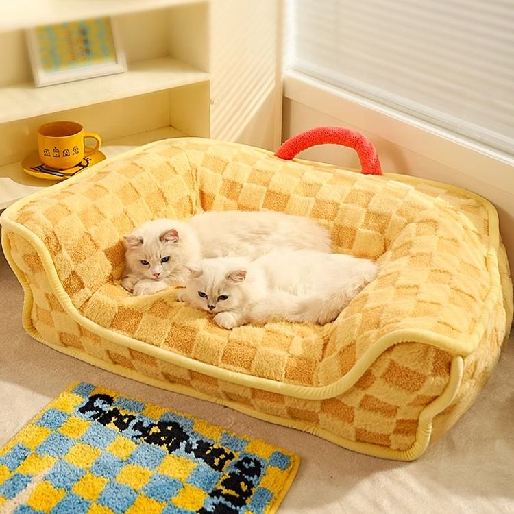 Cozy Yellow Cats Sofa Bed With Detachable Cover Comfortable Sleeping Cushions for Kittens Pet Beds